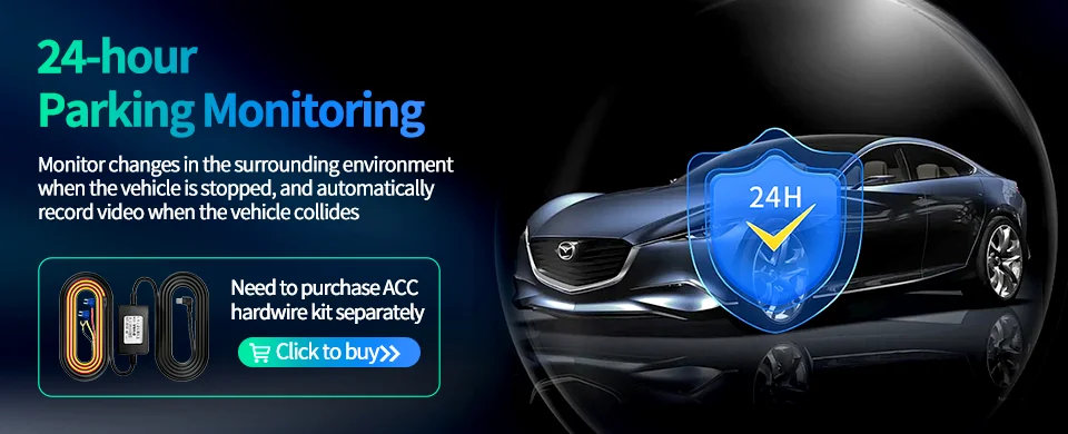 Monitor changes in the surrounding environment when the vehicle is stopped, and automatically record video when the vehicle collides(Need to purchase ACC hardwire kit separately)