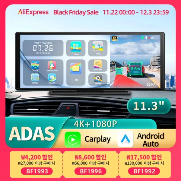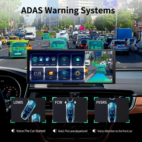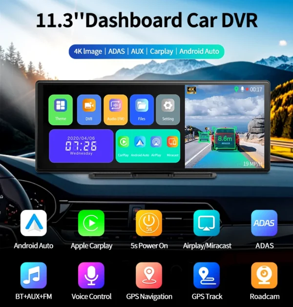 11.3 Inch ultra wide-angle full view touch screen, capturing license plates, road signs, and other critical details on the road. Very clear and smooth images display as like a stream flowing on the excellent WDR streaming mirror. Supports simultaneous 1:1 display of front and rear cameras. (The rear camera and cable require purchasing the dual lens option.)