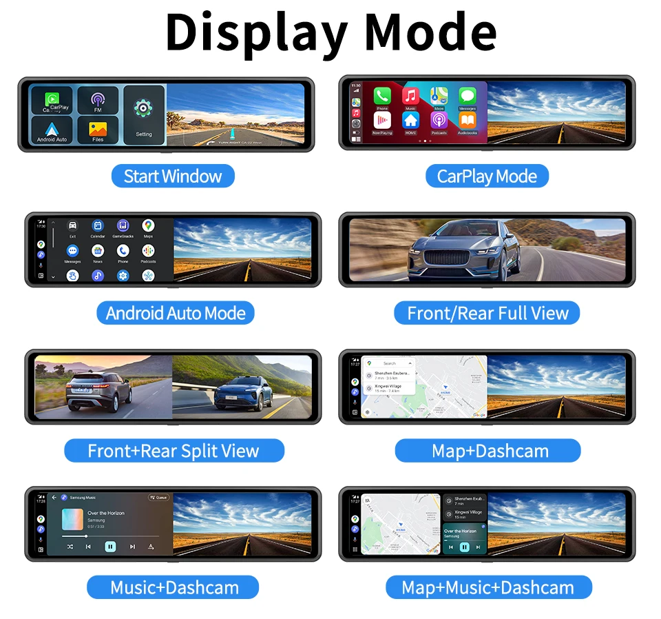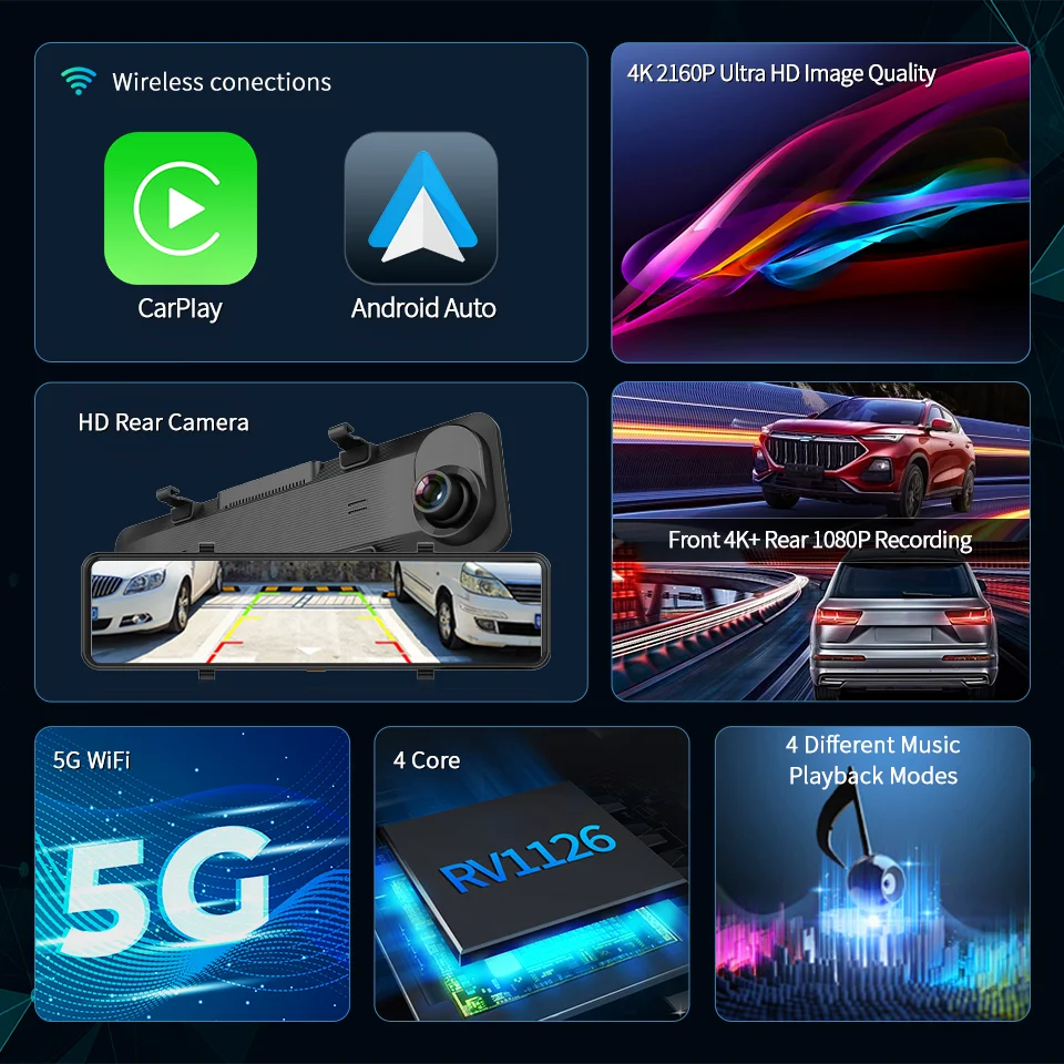 Imagebon 12 Inch Wireless CarPlay Android Auto Car DVR