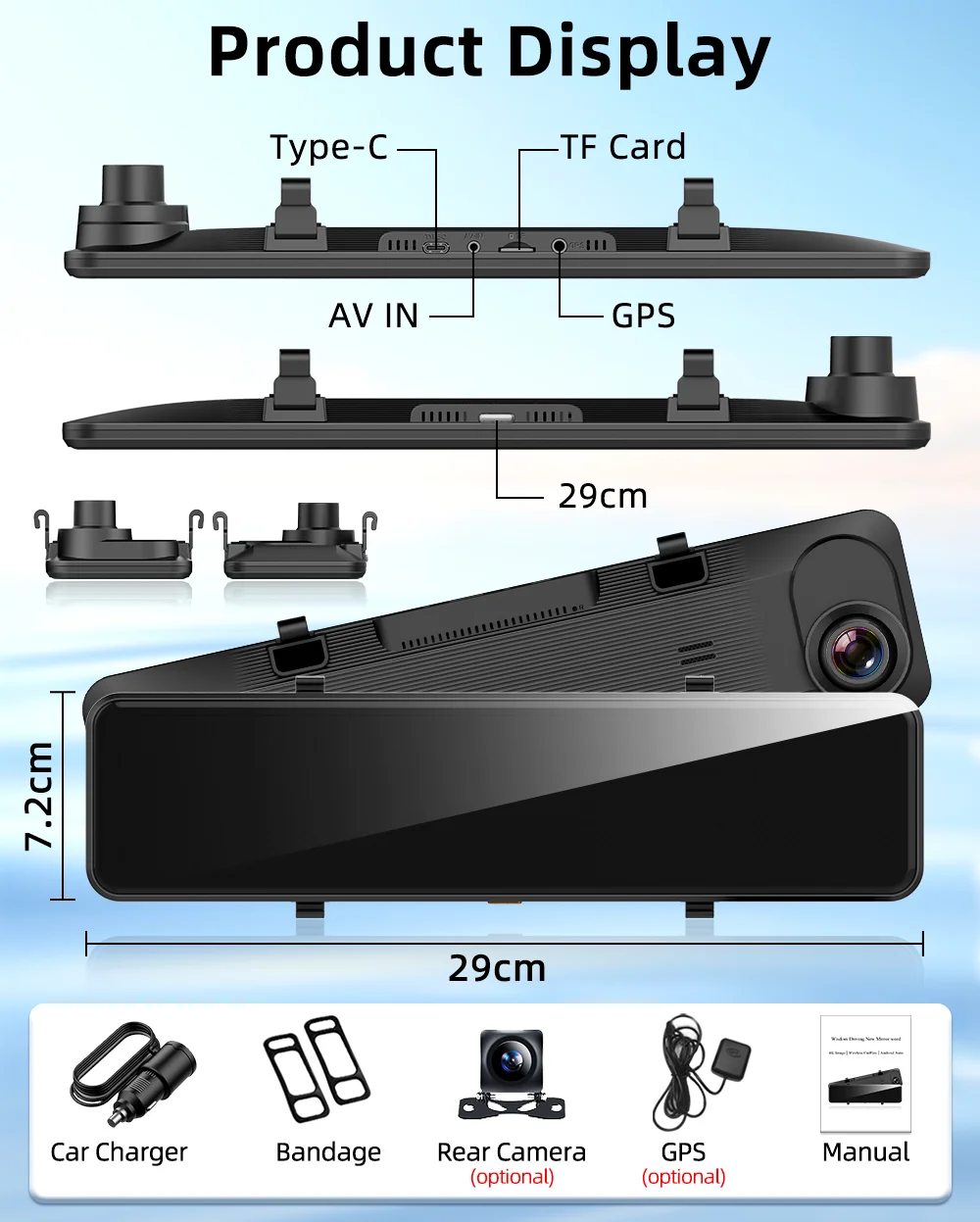 Front Camera 4K 2160P + Rear Camera 1080P.11.26″ IPS Touch Screen,135° Wide Angle.Up to 8 million pixels, to achieve true 3840*2160P 4K UHD resolution, Which can help us capture license plates, road signs, and other critical details on the road (If you don’t choose rear camera,it is single len)